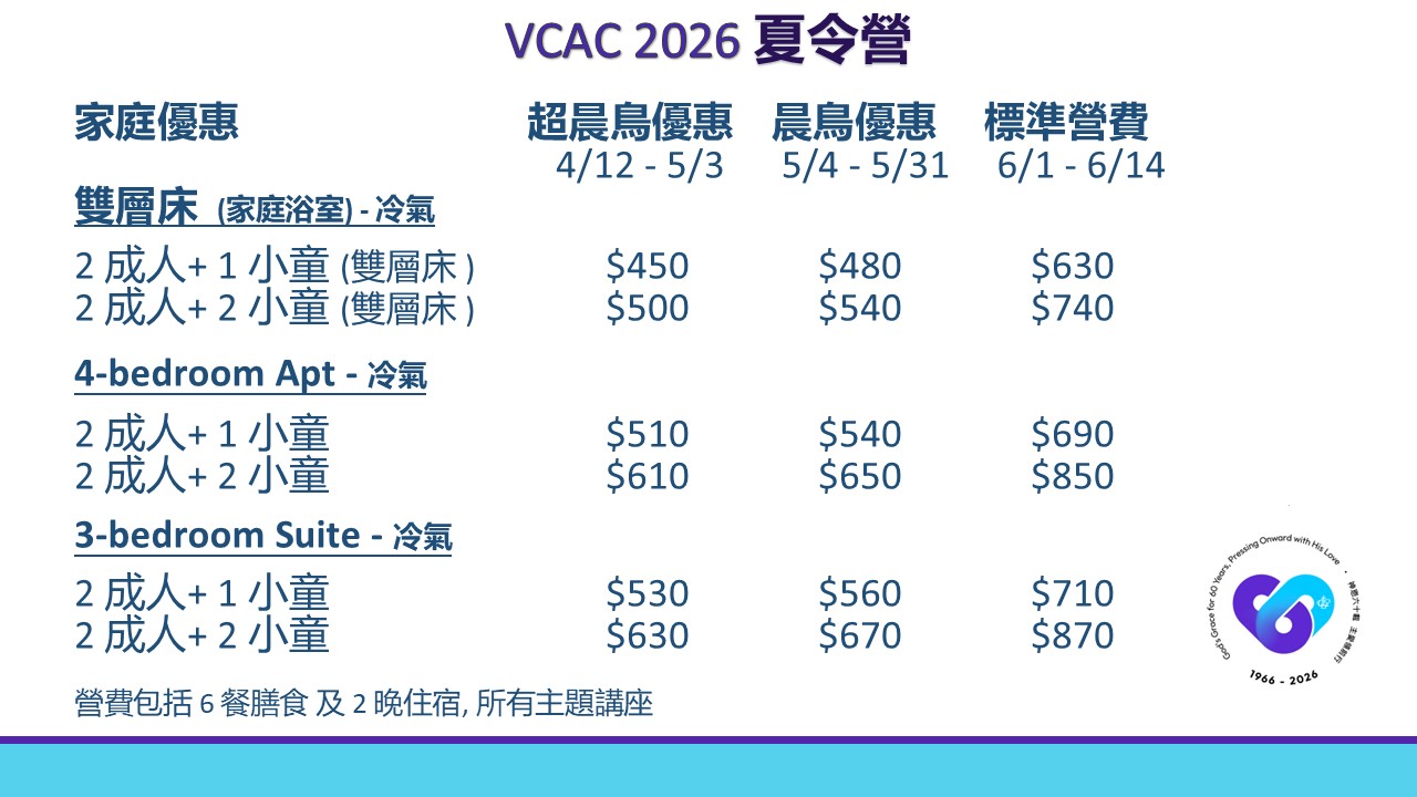 VCAC 2026 夏令營 – 神恩六十載 主愛領前行