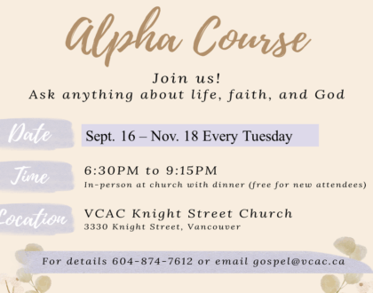 Theme: God’s Grace for 60 years, Pressing Onward with His Love Date: July 10 – 12, 2026 Location: Trinity Western University English speaker: Rev. Dave Hearn Cantonese speaker: Rev. Aaron Tang Mandarin speaker: Rev. Kar Park Chan Details to be announced later