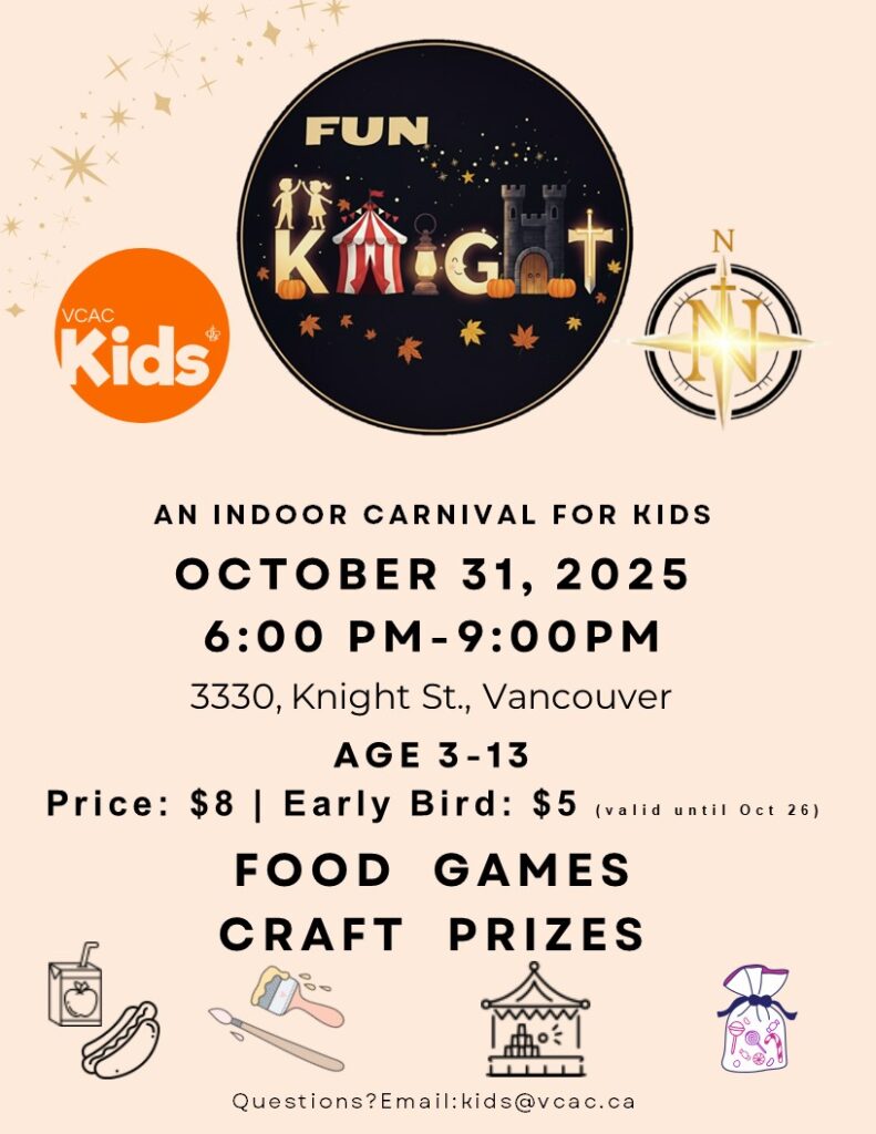 Funfest is a children’s carnival held annually on October 31st, providing a night of games, prizes, snacks, and a goodie bag for each child. It is a fun yet safe alternative to Halloween. Tickets will be sold in the foyer every Sunday from 11:00 AM – 11:30 AM and 12:30 PM – 1:00 PM.